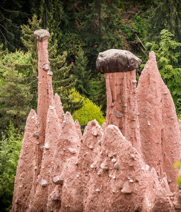 Die ErdpyramidenDie Rittner Erdpyramiden sind ein wahres Wunder der Natur und zählen zu den schönsten Europas. An gleich mehreren Orten am Ritten sind sie anzutreffen: Im Finsterbach, zwischen Mittelberg und Lengmoos, im Katzenbachtal, unterhalb von Oberbozen, und im Tal des Ganderbaches bei Unterinn. Die Erdpyramiden bestehen aus einem späteiszeitlichen Moränenlehm. Die höchste Erdpyramide ist 30 Meter hoch, die älteste 607 Jahre alt.
