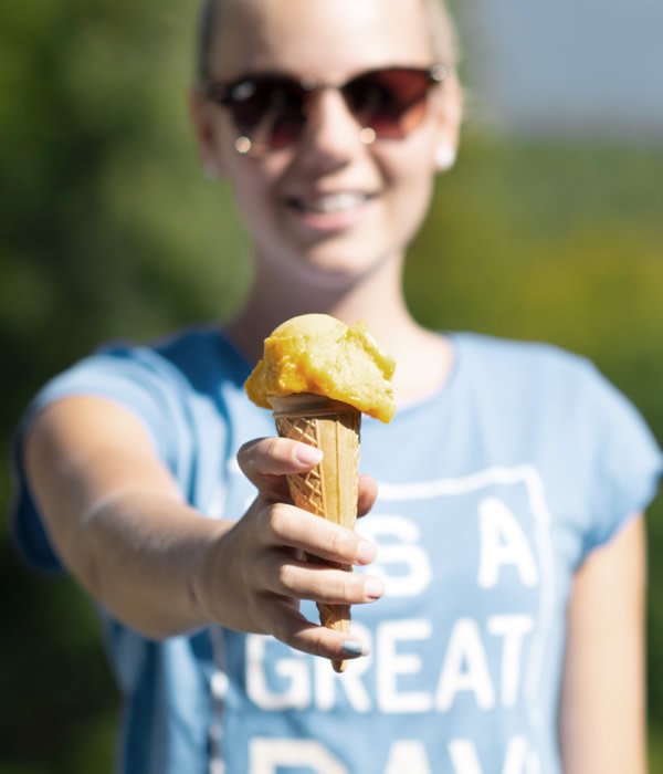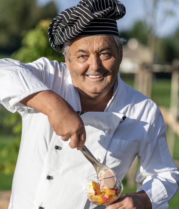 Sepp Hohenegger ha una particolare sensibilità per quest’arte, pur non essendo un amante del gelato, che non assaggia nemmeno. “Dobbiamo farlo noi, ma c’è di peggio nella vita”, racconta la figlia Barbara. Ciononostante, ha il suo gusto preferito: “Niente è meglio della stracciatella fresca!”, rivela l’appassionato gelataio. Quello prediletto dagli ospiti, invece, è il gelato allo yogurt variegato all’amarena, a base di puro yogurt naturale e amarene dal gusto pieno. Tra le coppe, la più gettonata è la sontuosa coppa alla frutta, una creazione composta da una palla di gelato alla crema e due alla frutta con tanti frutti freschi e un generoso ciuffo di panna.