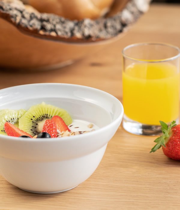 All’interno, il buffet è amorevolmente allestito: oltre a frutta fresca, müsli e yogurt, vi attendono differenti varietà di pane appena sfornato, croissant e una torta di grano saraceno fatta in casa dall’aroma meraviglioso. Erika rivela che le marmellate fatte in casa, preparate con le albicocche della Val Venosta e le fragole del giardino, sono assolutamente da provare.